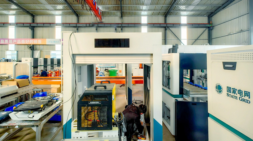 電力智能倉儲設(shè)備生產(chǎn)制造車間,正在為國家電網(wǎng)進(jìn)行設(shè)備調(diào)試